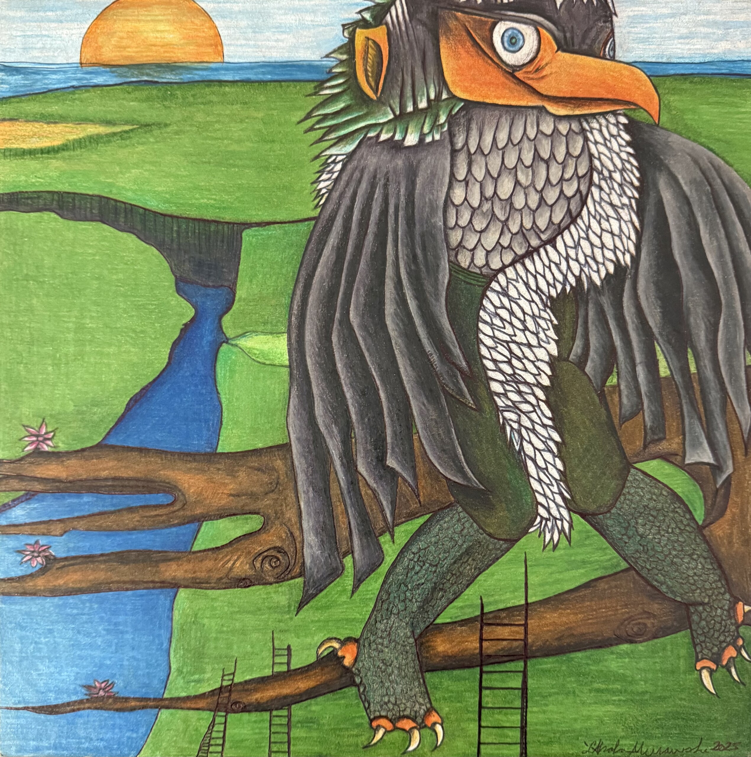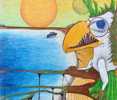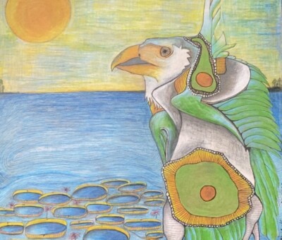 POISED AT THE DEMERARA Dimensions: 12″w x 12″h (unframed) Materials: Ink and Colored Pencil on Recycled Chipboard **contact us for pricing** Share SHARE…